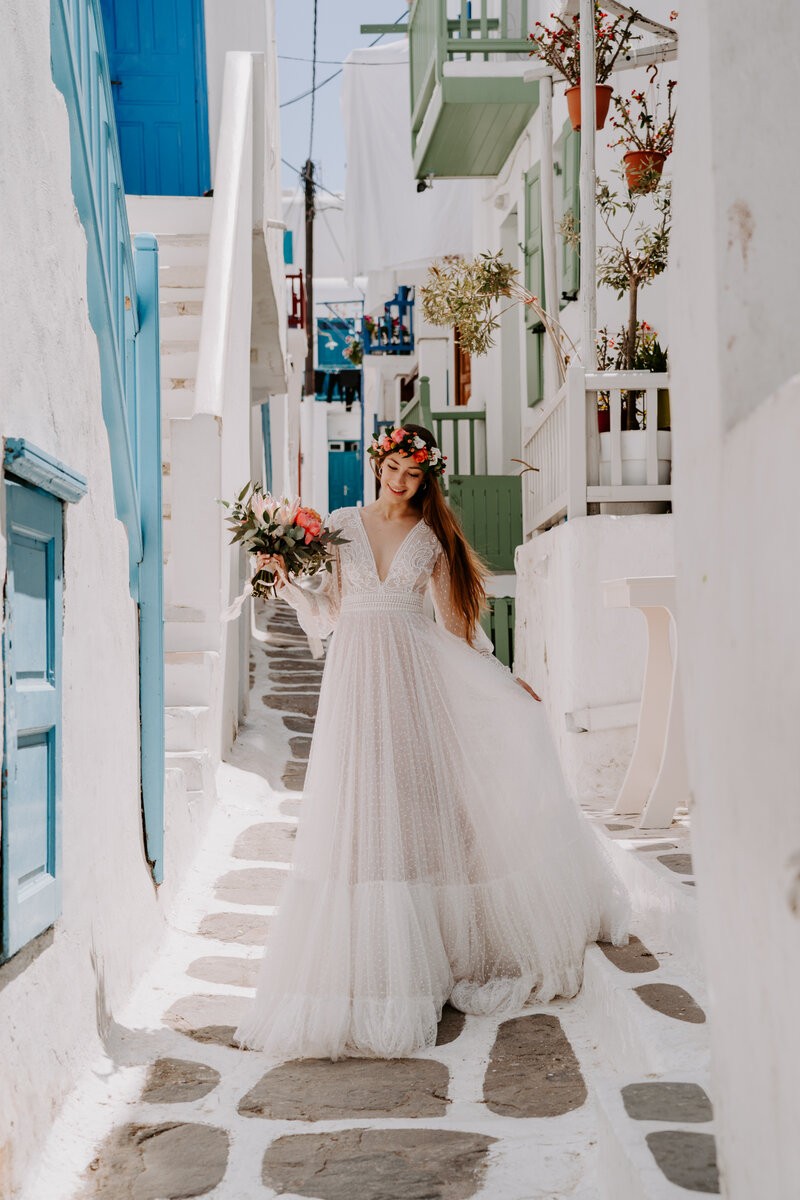 Join us on this journey through images that encapsulate the pure essence of a Mykonos wedding, offering inspiration to couples envisioning their dream destination celebration on this captivating Greek island.