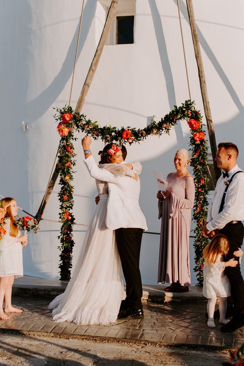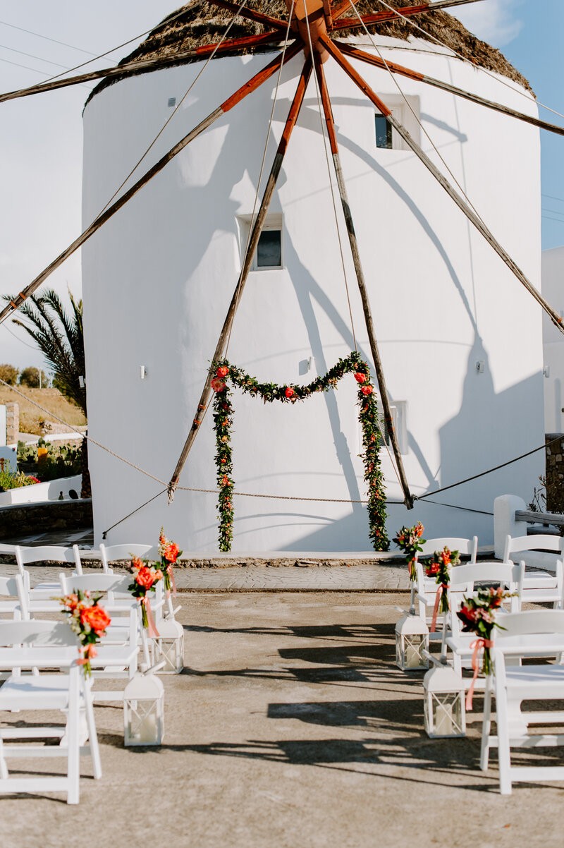 Having this vision in mind, a unique Mykonos wedding ceremony was born, using Absolute Mykonos as our dream venue to create a fairytale-like windmill wedding ceremony, performed by Mykonos Wedding Celebrant. Followed by an equally stunning Mykonos reception to match, Mykonos Garden became our wedding dinner venue that brought all the magic of this project together.