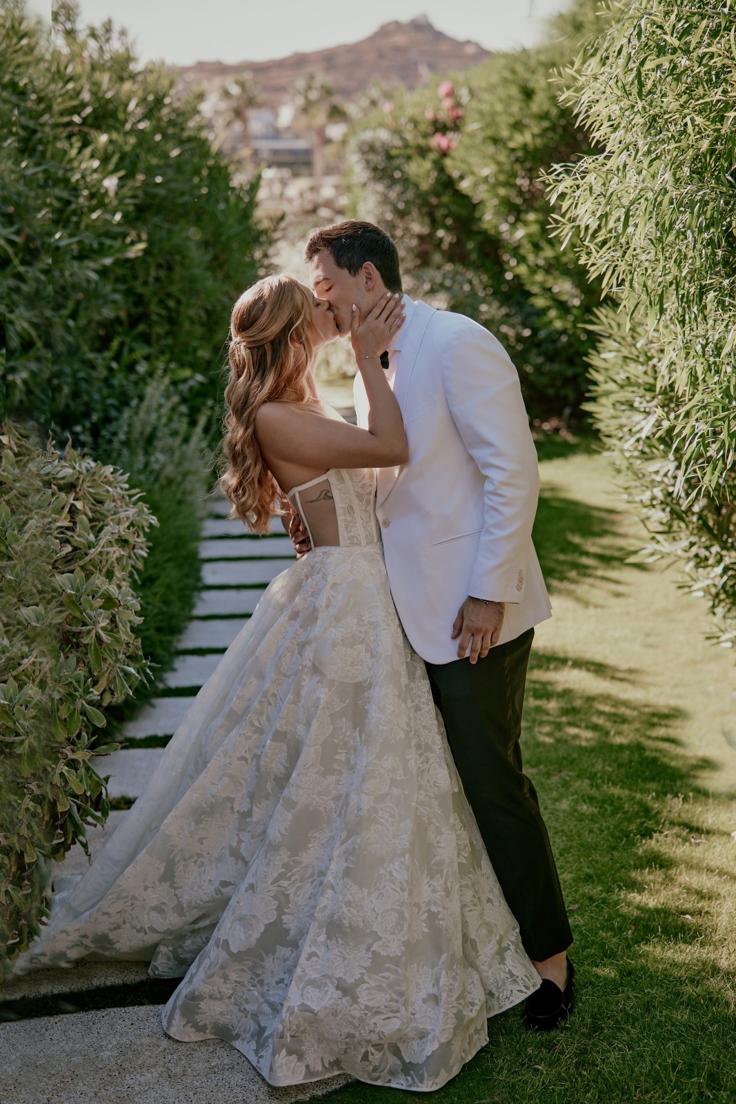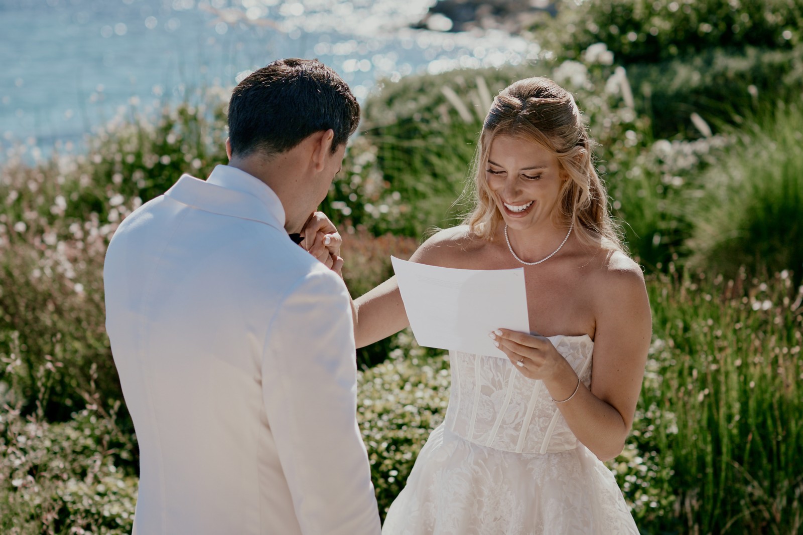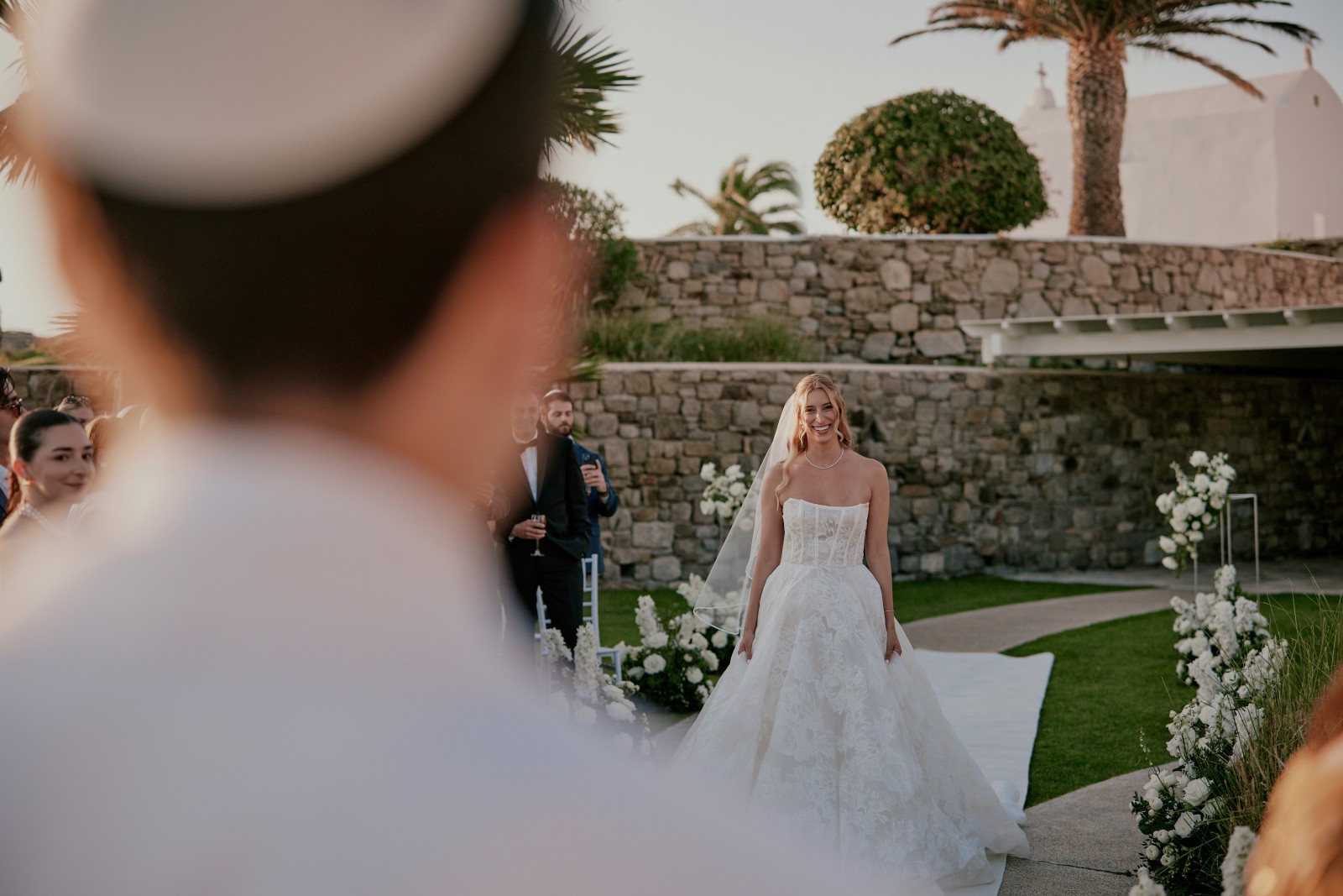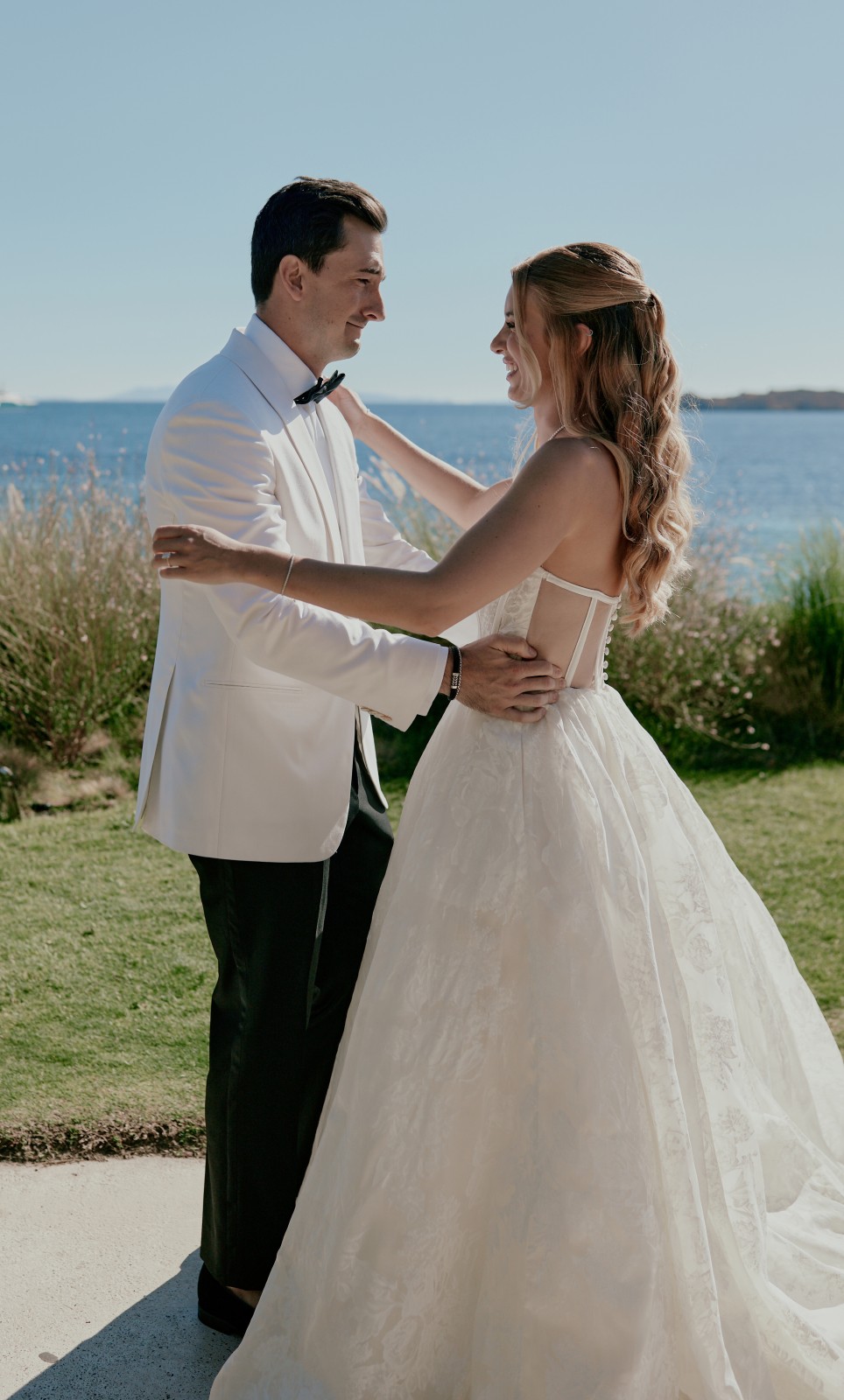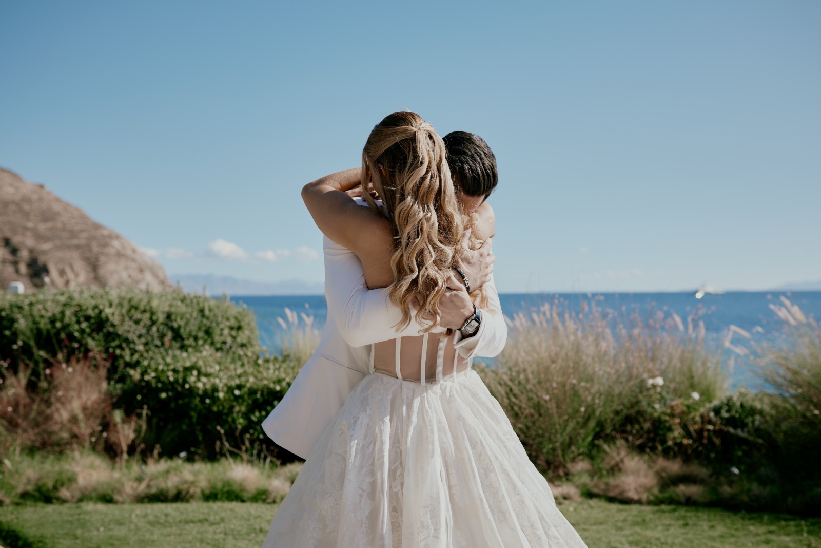 Before the ceremony, Suzanne and Ryan shared an intimate first look in Mykonos. With no one else around, they exchanged personal vows—words that captured the depth of their love, promises for their future, and heartfelt reflections on the journey that had led them to this moment.