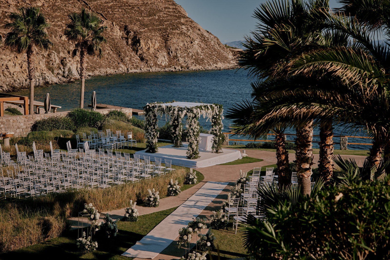 in front of the amazing sea view of the venue. Under a stunning chuppah