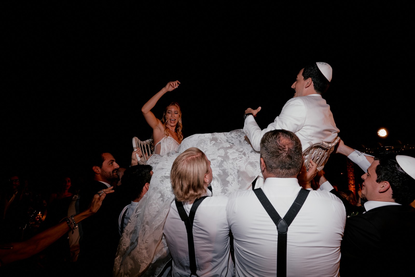 This incredible duo entrusted us not only with their Mykonos wedding day but with an entire week of Mykonos pre-wedding events leading up to the big moment. From a lively Greek Night Welcome Party and a scenic Boat Cruise around Delos, to an intimate Sabbath dinner and an enchanting Henna Night, every event was thoughtfully planned and filled with joy, culminating in the most beautiful Jewish wedding in Mykonos.