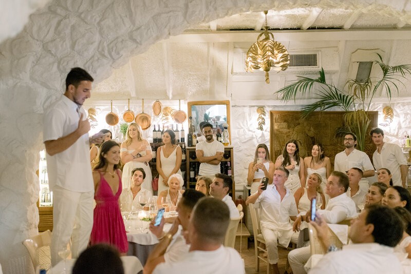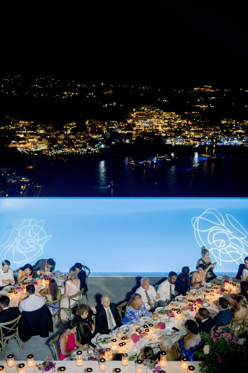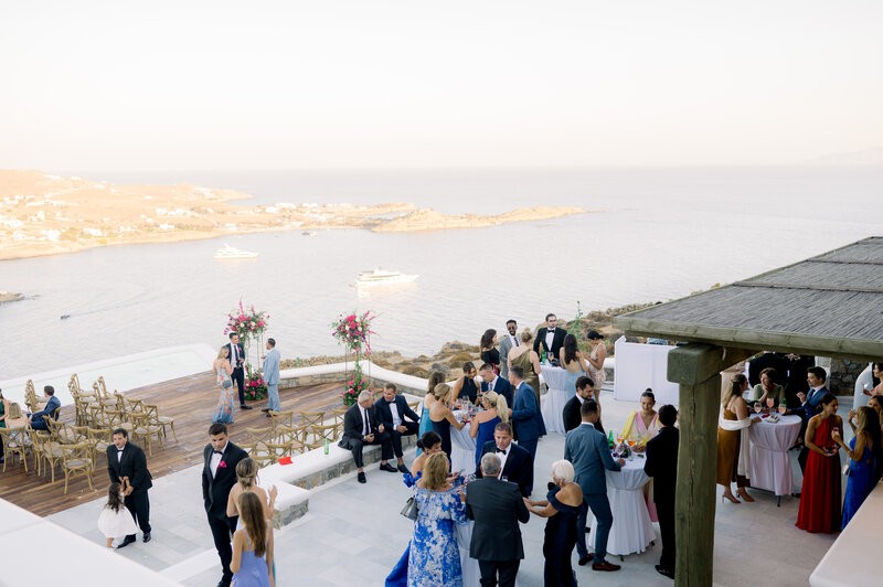 This unforgettable 3-day affair commenced with a classic rehearsal dinner at the iconic Katrin restaurant in Mykonos Town, setting the stage for a lively wedding celebration. The festivities continued with a wild beach party at Scorpios, where the sun, sea, and laughter intertwined to create magical moments. The wedding day itself was a perfect reflection of their radiant love, and the magical setting, overlooking the endless blue, created the most picture-perfect moments for everyone to remember. Adding a sweet touch to the celebration, Shannon and Dennis treated their guests to fresh ice cream from an adorable ice cream cart. As the day turned into night, and the celebration reached its peak, thoughtful recovery kits were provided, showcasing our dedication to ensuring everyone had a seamless and enjoyable experience.