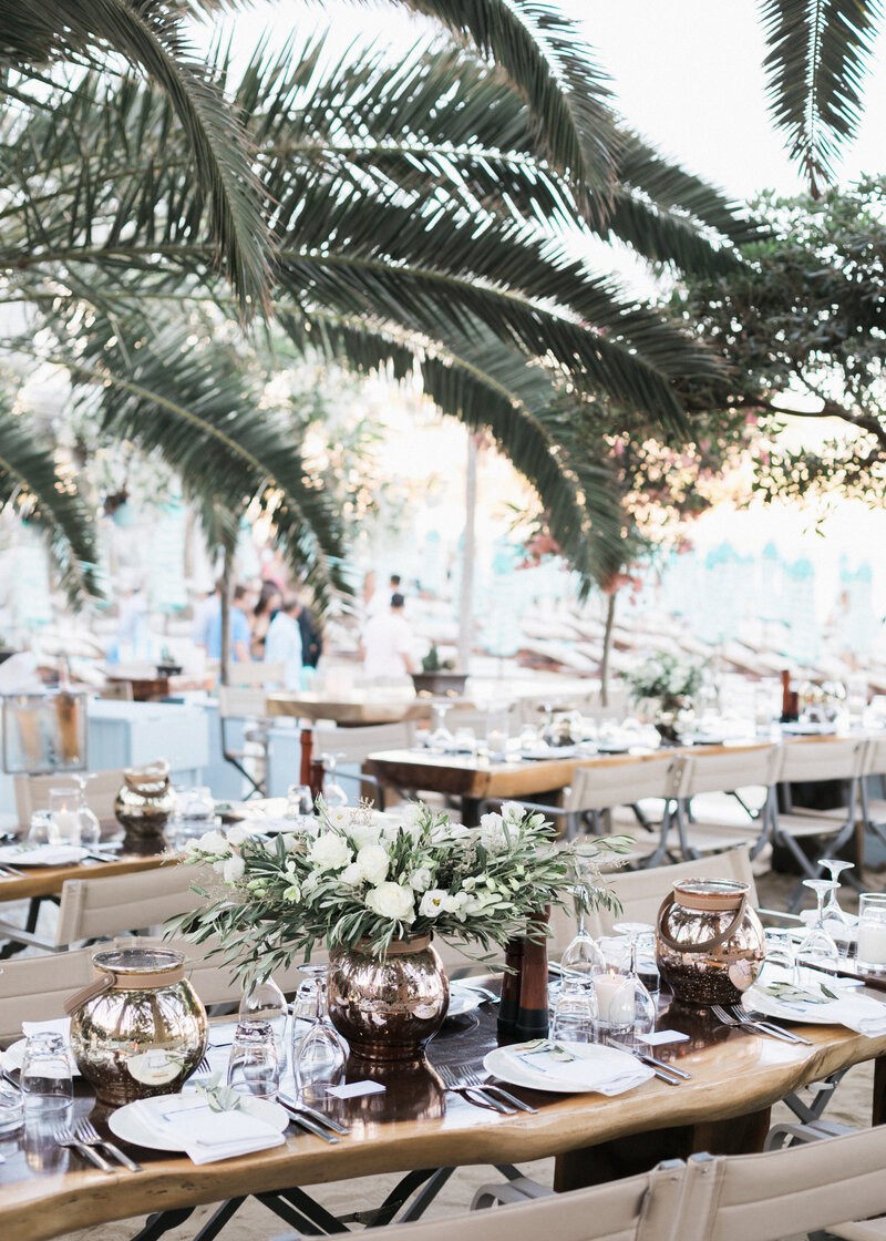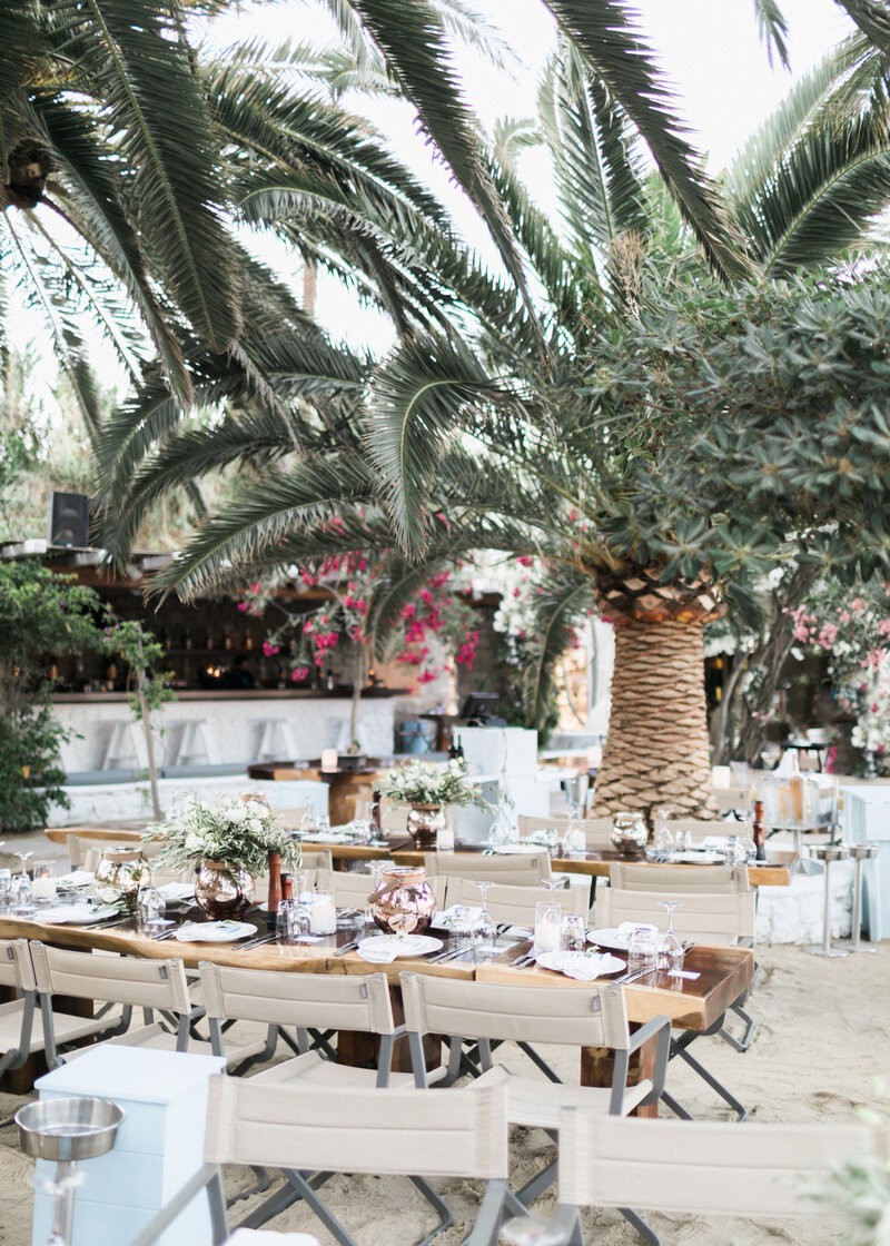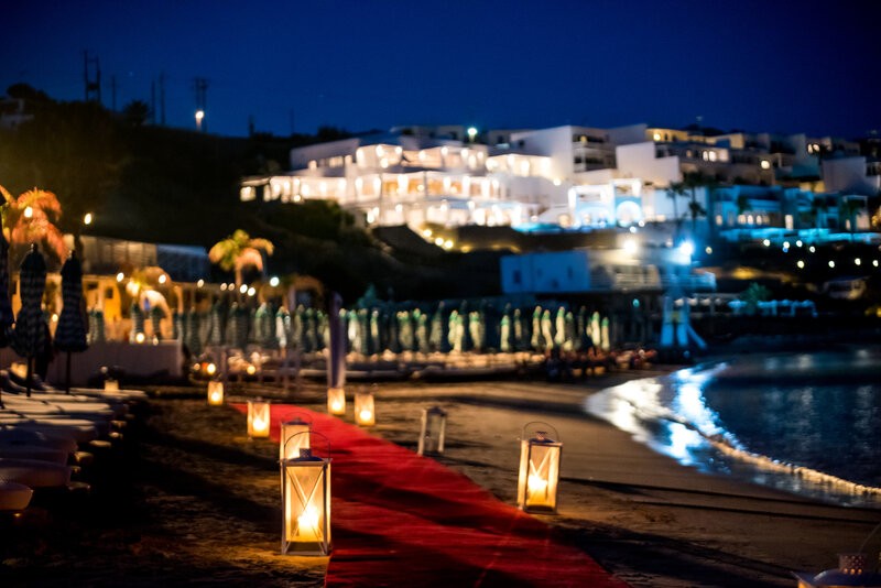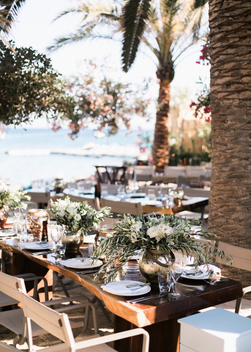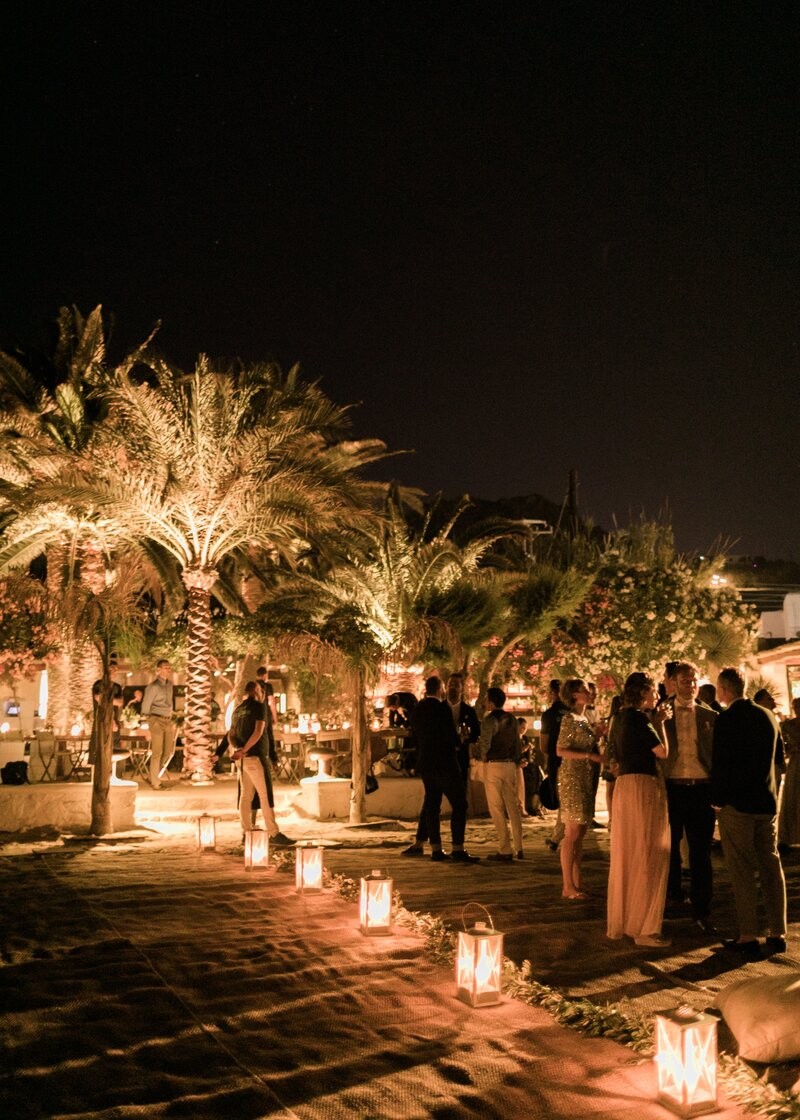 Under the golden hues of Mykonos skies, amidst olive leaves and white flowers, the couple exchanged vows, surrounded by loved ones on the sandy beach. The elegant Mykonos celebration continued with a dinner at Nammos, capturing the essence of their love and the beauty of Mykonos.